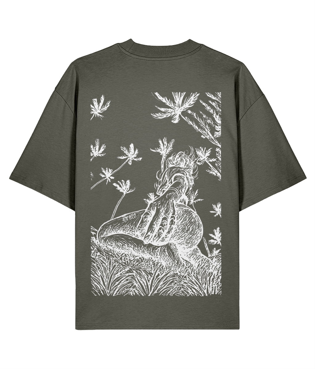 Crafted from 100% organic ringspun combed cotton, the shirt’s heavyweight 200 GSM fabric and dropped shoulder silhouette deliver premium comfort with a bold silhouette. Whether you’re making a statement on the street, gifting a collector of rare fashion, or adding to your own arsenal of wearable art—this piece is designed to turn heads and stir souls.